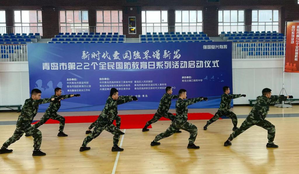 9月17日,学校组织退役复学学生、国旗护卫队参加由青岛市委宣传部、青岛市国防教育办公室、青岛警备区政治工作处主办的“青岛市第22个全民国防教育日系列活动”启动仪式,现场进行了擒敌拳和摔擒表演。退役复学学生赵英琦说:“很荣幸能作为退役大学生代表参加此次活动,在今后的学习、生活中,我们一定会用实际行动践行‘请党放心,强国有我’的铮铮誓言,积极参与国防教育活动。”