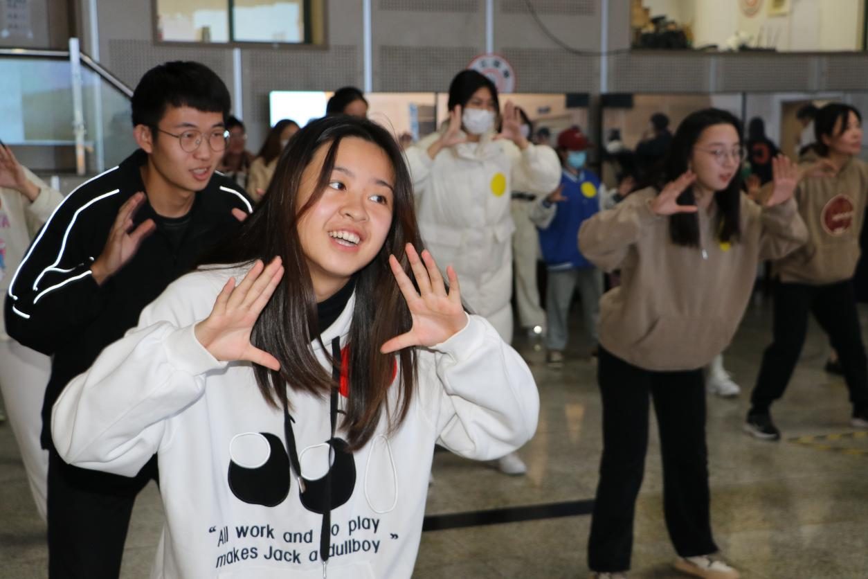 心理委员齐跳“开心超人”舞蹈为活动热身