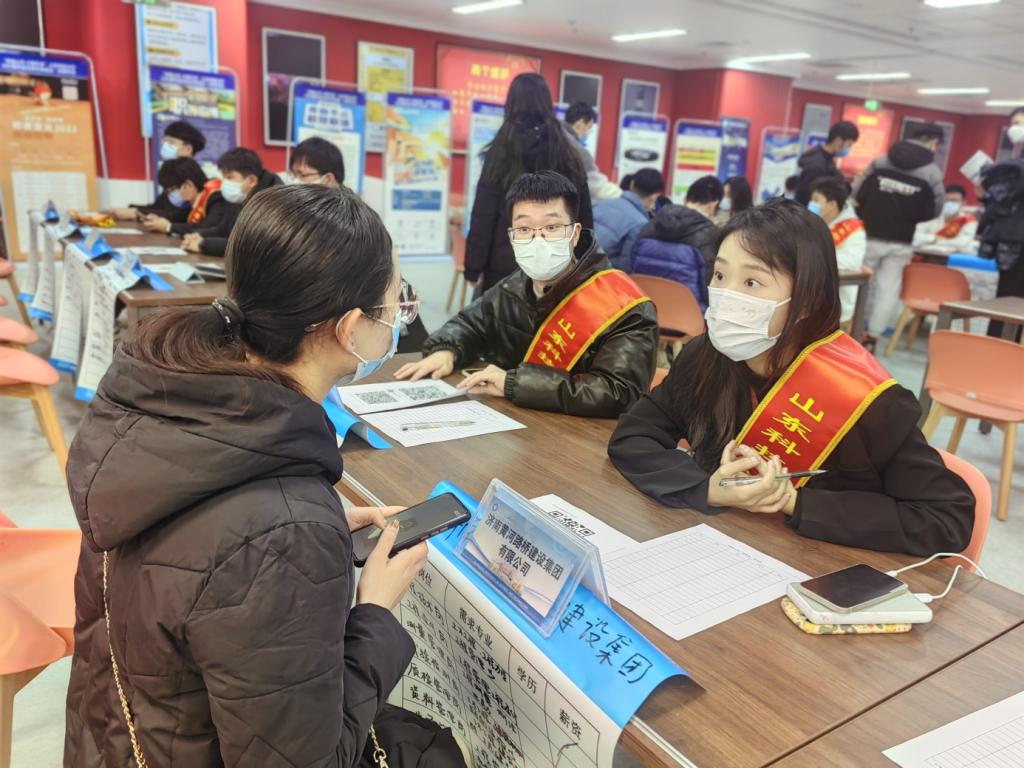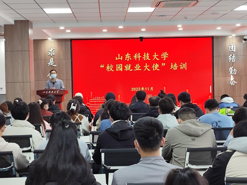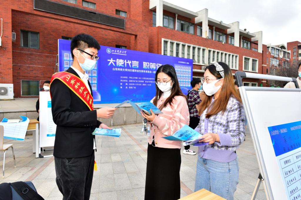 12月2号上午,“‘就选山东 大使代言’山东科技大学2023届毕业生秋冬双选会在图书馆三楼东侧报告厅火热开市。来自济南、烟台的72家用人单位通过“校园就业大使”参会,提供就业岗位2500余个。