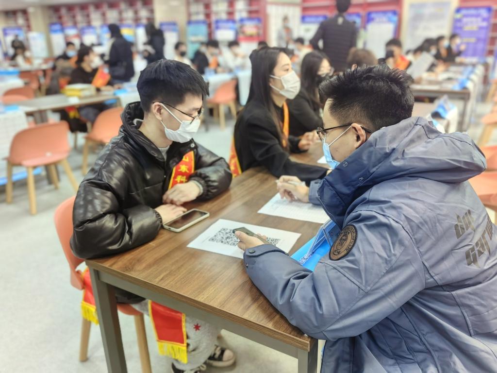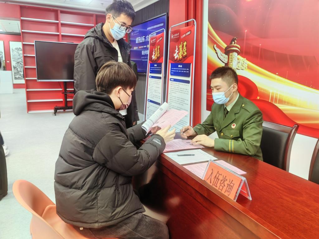 活动现场,大学生就业指导中心老师、学院辅导员还为毕业生提供简历诊断、职业规划、签约指导等一站式服务,助力毕业生求职就业。同时,由退役复学的学生们担任的学校征兵宣传员,为毕业生详细讲解参军入伍政策,鼓励大家军营建功、报效祖国。