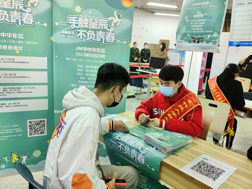 “有金属材料和无损检测技术相关专业的同学可以关注一下了,无损检测岗急需你的加入。”“周末双休,而且还会提供单人公寓、1元午餐等福利。”……在双选会上,佩戴着“校园就业大使”绶带的“企业HR”正精神饱满地宣传着自己代言的企业,并认真细致地为求职的同学解疑答惑。