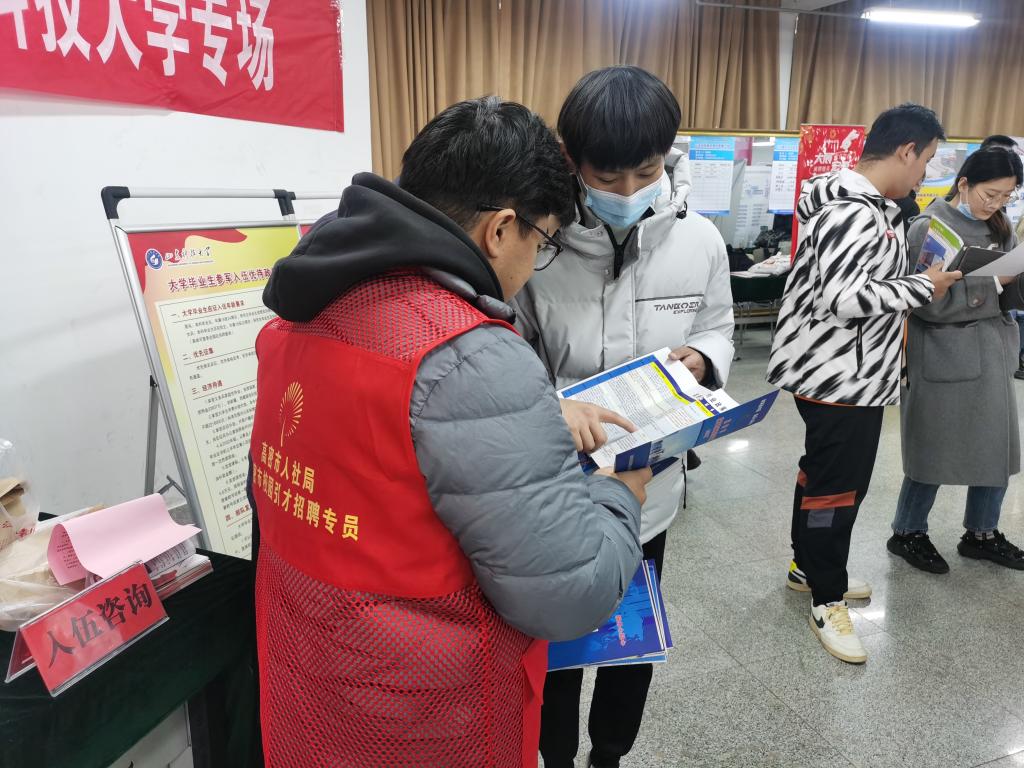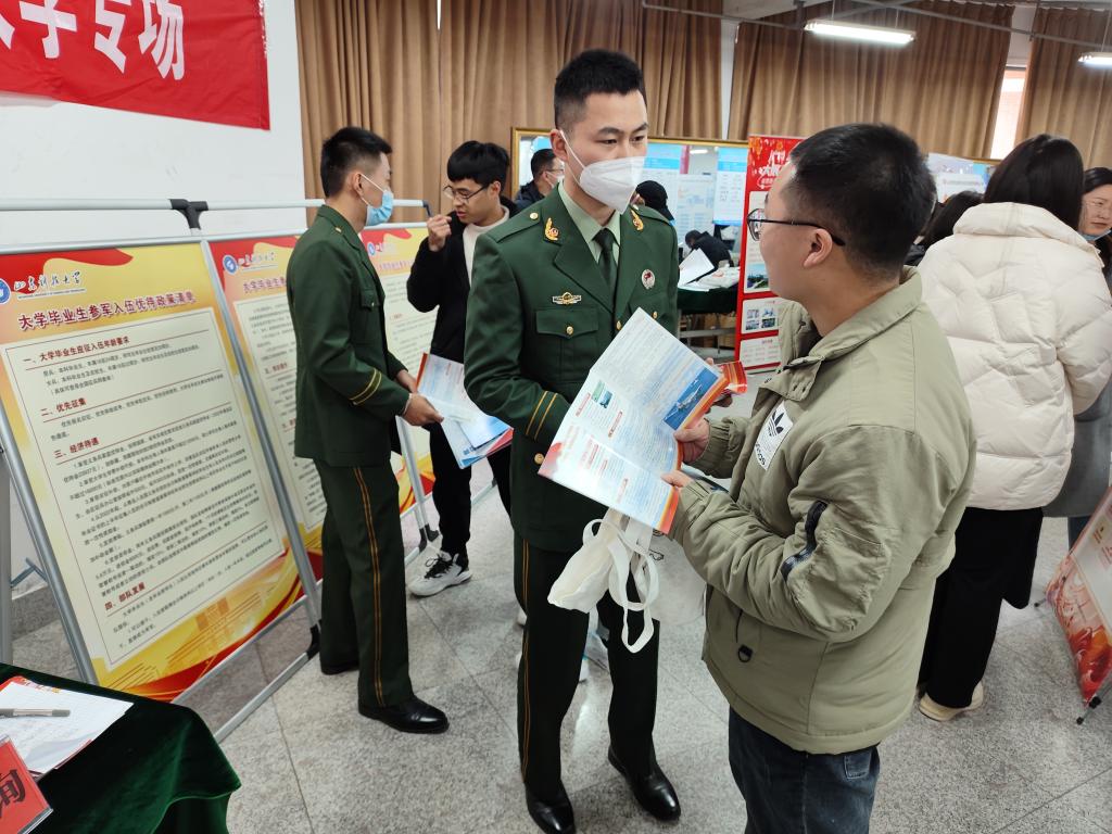 活动现场还为毕业生了提供简历诊断、职业规划、签约指导政策宣传等一站式服务,一方面向学生宣传解读人才服务、劳动保障、就业创业等有关政策,另一方面根据学生就业意愿,对其简历提出针对性的建议,为应聘提质增效。同时,由退役复学的学生们担任的学校征兵宣传员,为毕业生详细讲解参军入伍政策,鼓励大家军营建功、报效祖国。