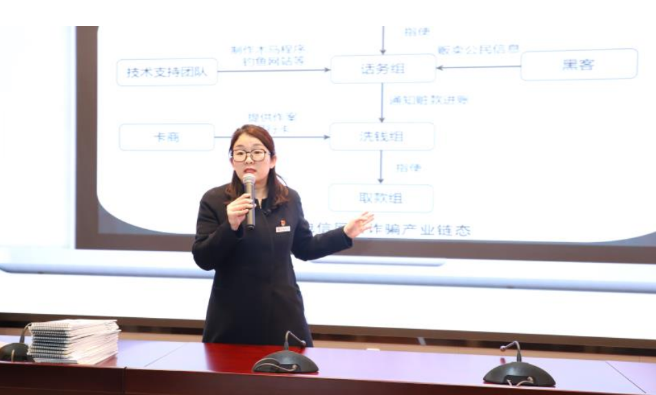 为了帮助学生们增强防范电信诈骗的意识和能力,陈小妮通过电信网络诈骗产业链态,与同学们分享了几种常见的传统和新型电信诈骗的类型,并列举了大量贴近现实的案例,帮助学生们加深印象。据陈小妮介绍,传统电信诈骗有短信诈骗、仿冒身份、下载APP以及刷单诈骗四种类型,而新型电信诈骗则包括入会服务、疫情诈骗、视频会议以及创业诈骗。“我们一定要警惕这些常见的电信诈骗,它们非常具有迷惑性,同学们在日常生活中一定要注意甄别。”陈小妮表示。
