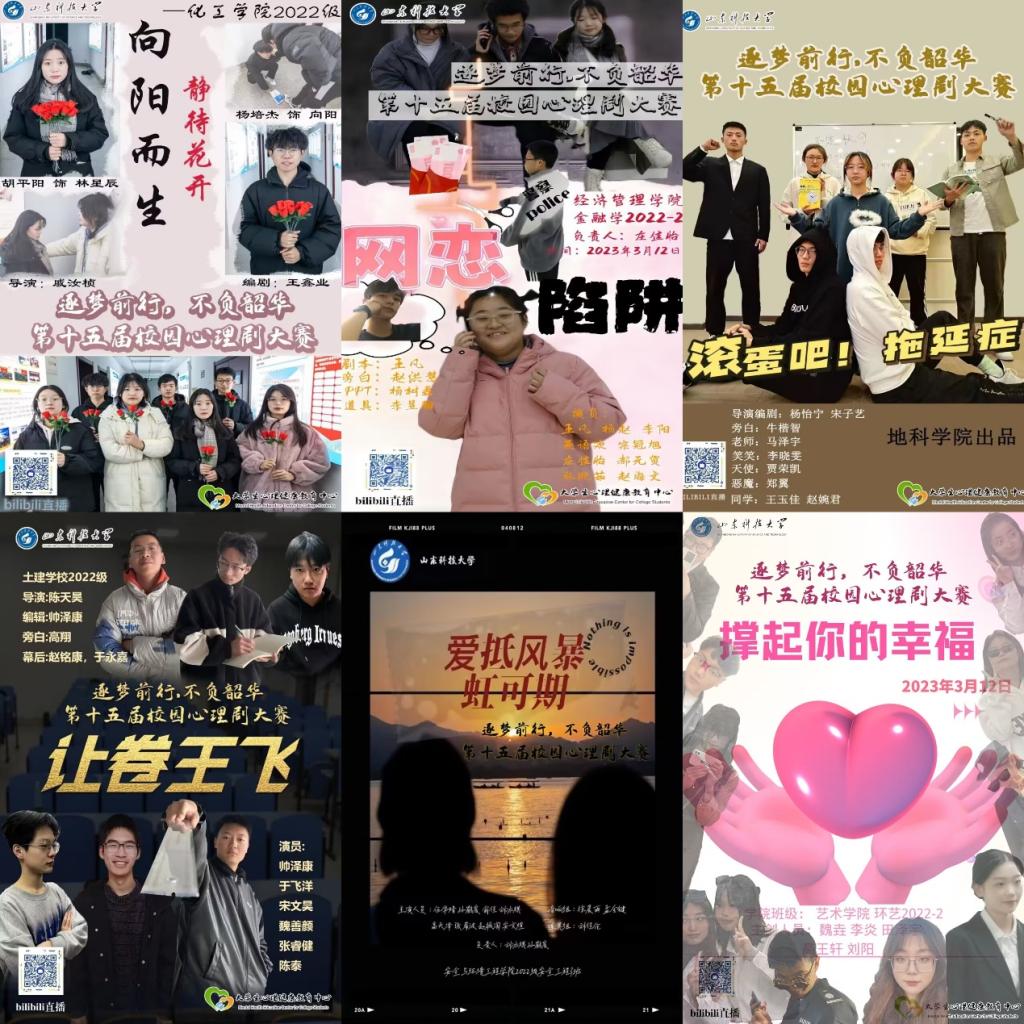 校园心理剧大赛以提高大学生心理健康素养为目标,形象生动地把大学生常见的心理冲突、心理问题以小品表演的方式演绎出来,引导大学生在熟悉的情境中感同身受、反思成长。参加决赛的6项作品构思巧妙、主题深刻,用富有张力的表演和发人深省的剧情给观众带来一次寓教于乐的心灵洗礼。经管学院的《网恋陷阱》和安全学院的《爱抵风暴虹可期》获剧场单元一等奖,化工学院《向阳而生》、地科学院《滚蛋吧,拖延症》、土建学院《让卷王飞》、艺术学院《撑起你的幸福》获剧场单元二等奖,材料学院等13个学院作品获剧场单元三等奖;《“友情”是怎样练成的》等7项作品获得短视频单元一等奖、《镜中镜》等12项作品获短视频单元二等奖、《微澜》等16项作品获短视频单元三等奖;化工学院李玲玲、经管学院李含聪、安全学院诸葛长华、土建学院张方源、艺术学院李一、地科学院李天惠被评为校园心理剧大赛优秀指导教师。