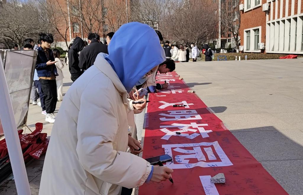 为响应青岛市创建全国文明典范城市号召,深化校园文明建设,引导学生树立绿色低碳、环保健康的生活理念,3月12日,学生工作部(处)学生公寓管理服务中心联合丹田物业组织开展“垃圾下楼入桶,文明你我共行”文明校园建设活动,2000余名学生汇聚繁星广场参与活动。