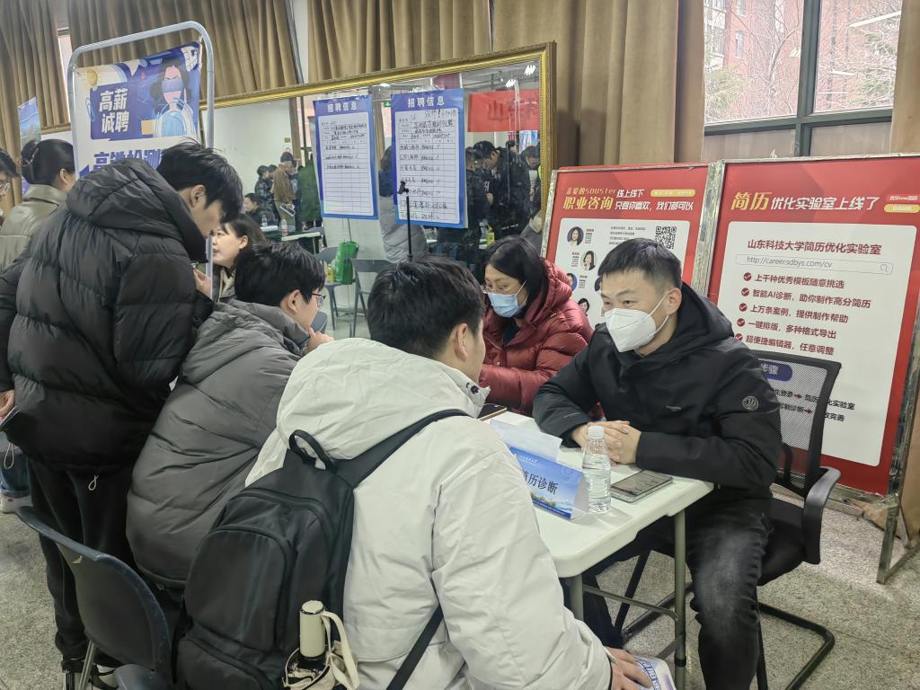 开学第一周,中铁二十一局、中建七局、富海集团有限公司、烟台台海玛努尔核电设备有限公司等20家用人单位进校开展专场招聘宣讲;3月4日,山东能源集团携15家二级单位来我校举办招聘会,开启山东能源春招第一站;3月5日,“就选山东 我们来了”名企联合招聘会上,43家用人单位“组团”来校招贤纳才,提供就业岗位2000个……