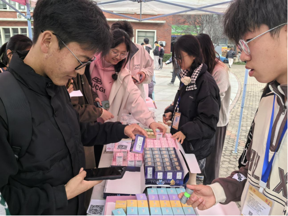 活动现场,分为爱心捐赠区、爱心义卖区、暖心寄语区和游戏互动区四部分。在爱心捐赠区,每一件物品都承载着捐赠者的爱心和祝福,有的爱心物品上附带着捐赠者的暖心寄语,有需要的同学可以登记领取,真正做到了让资源循环,让爱心流淌。爱心义卖区则是另一番热闹的景象,手工艺品、二手书籍、学习资料等琳琅满目,吸引了众多同学驻足选购。暖心寄语区则是一个充满温情和感动的地方,同学们在便利贴上写下自己对欠发达地区孩子的祝福、对未来自己的期望以及对学校的祝福,让人倍感温暖和鼓舞。游戏互动区则是最为热闹和欢乐的地方。大“画”校园、创意折纸、绕口令、套圈、夹乒乓球、听歌识曲、指东往西等丰富多彩的游戏项目吸引了大量同学参与,极大丰富了同学们的课外生活。