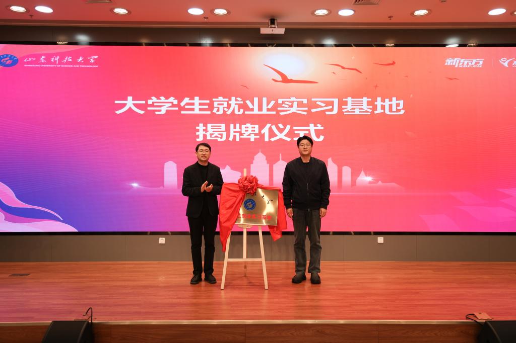 启动仪式上,为密切校企合作,学生工作处处长尹立明与青岛新东方前途出国咨询有限公司总经理孙桂岩共同为大学生就业实习基地揭牌。青岛新东方前途出国副总经理刘和平代表企业向学校捐赠1000 册留学教育图书,助力国际化人才培养氛围的营造,国际交流合作处处长高升代表学校接受捐赠。