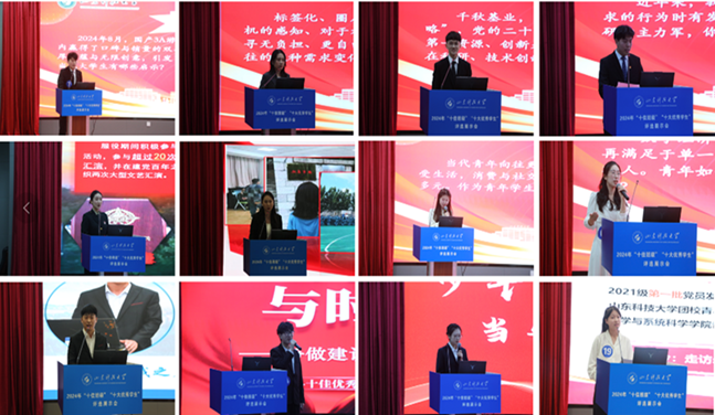 本次评选展示会由学生工作部(处)主办,由各学院党委副书记、学工办主任、学校相关职能部门和学生代表共同担任评审,青岛校区共有19个候选班级和19名候选人进入现场答辩环节。“十佳班级”答辩分为班级代表展示和集体展示两个环节,“十大优秀学生”答辩分为自我展示和现场问答两个部分。各候选班级和候选同学在展示过程中都展现了扎实的专业功底、开拓进取的精神风貌和矢志奋斗的青春担当。