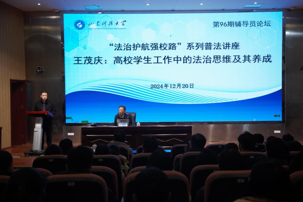 近日,学校举办第96期辅导员论坛。本次论坛作为“法治护航强校路”系列普法讲座之一,特邀请文法学院教授、学校法律总顾问王茂庆主讲,围绕“高校学生工作中的法治思维及其养成”主题进行了专题分享与交流。论坛由法治工作办公室、学生工作部主办,学生工作部副部长靳凯主持。