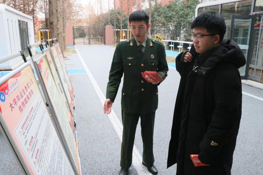精心开展征兵咨询,设立征兵咨询点,为学生发放征兵宣传资料,解答各种疑问。咨询点现场摆放了大量的征兵宣传手册、折页等资料,内容涵盖征兵政策、报名流程、体检标准、优待措施等各个方面,方便学生随时取阅。宣传人员热情耐心地接待每一位前来咨询的学生,以亲身经历和专业知识为学生们提供详细准确的解答,消除他们的顾虑和疑惑。在咨询过程中,还注重收集学生的反馈意见和建议,及时调整优化宣传内容和方式,提高宣传工作的针对性和有效性。