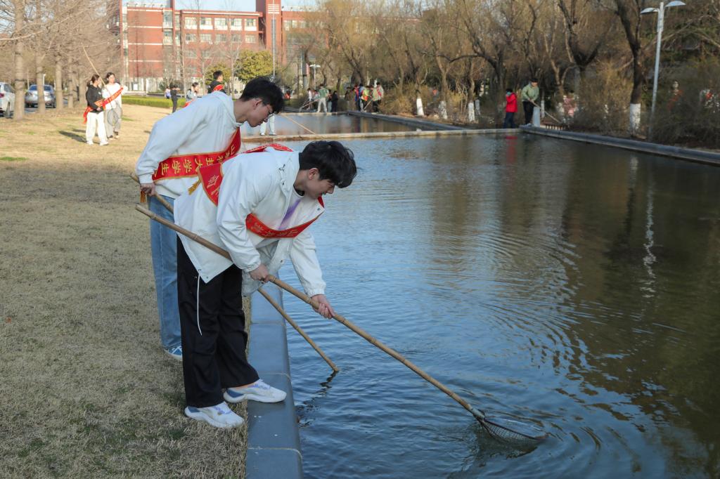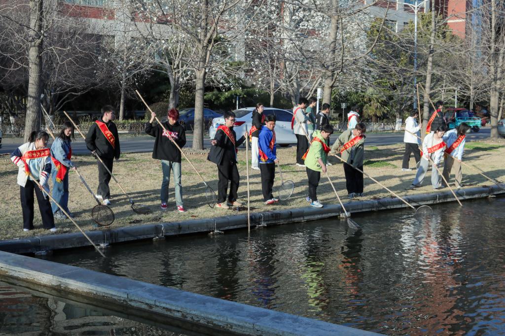 启动仪式结束后,学生志愿者代表前往墨水河进行环境卫生清理服务,对墨水河进行垃圾和堆积物的清理。