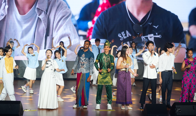 活动现场,山东科技大学学生带来合唱《夏天的梦是什么颜色》《世界赠予我的》和中外学生歌舞表演《下一场山海》。