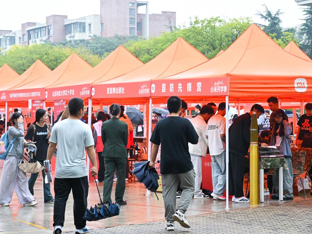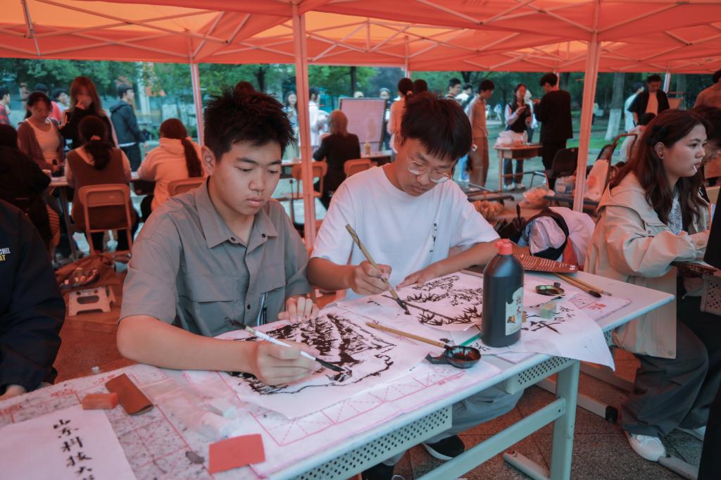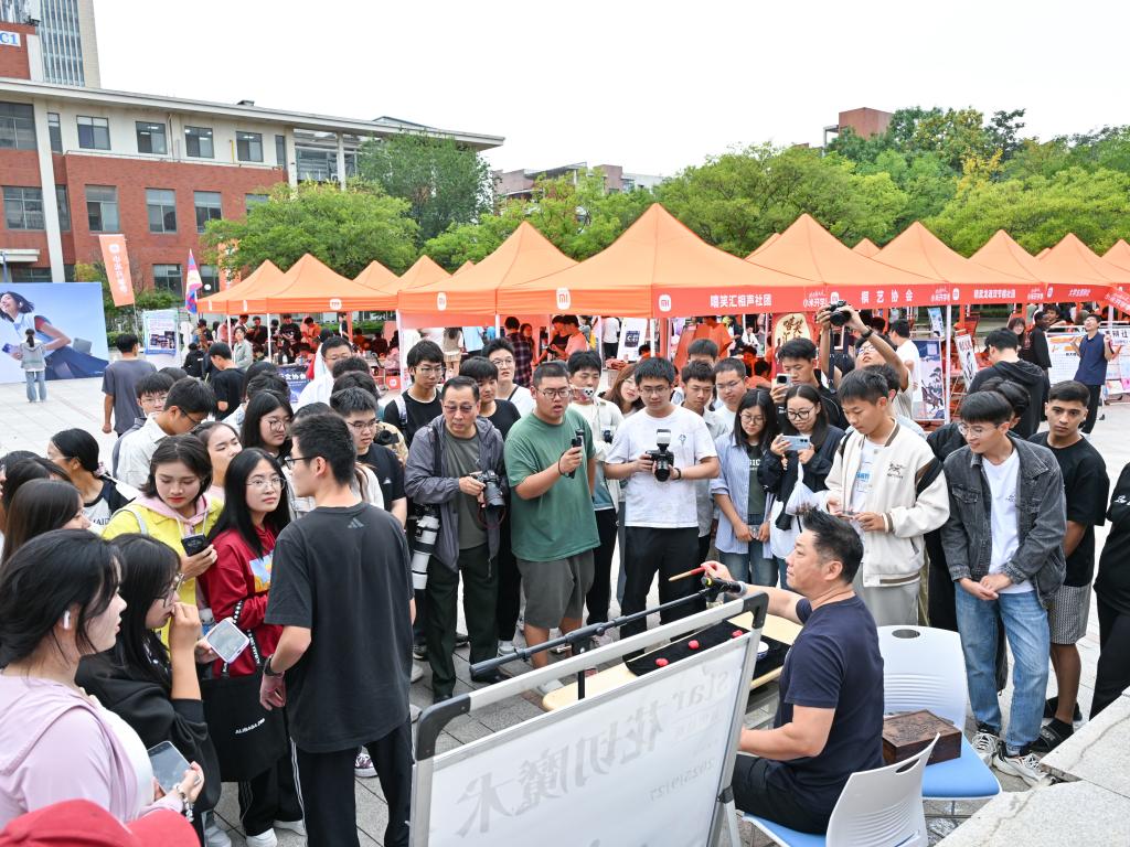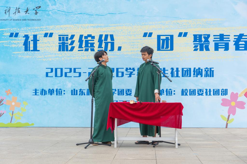 活动当天,繁星广场被装点得格外热闹。各社团展位创意十足,风格多样:编程筑基,智能为魂,自动控制协会现场展示自主研发的智能小车,灵活的操控与精准的反应让新生驻足惊叹;机器人协会带来各式机器人模型,机械臂的流畅运转、机器人的互动动作引得新生纷纷上前动手体验,沉浸式感受科技魅力;宣纸铺展,墨香漫溢,书画协会的成员现场伏案创作,笔锋遒劲有力,线条灵动自然,他们还将完成的书画作品赠予驻足的新生,让墨香与心意随作品传递;台前一站,笑意满场,嘻笑汇相声社团带来了片段式即兴表演,生动的情节与饱满的情绪赢得阵阵掌声;魔术添彩,方言传情,star花切魔术社带来的《非一般爱情》别出心裁,纸牌在指尖流转出炫酷花样,经典电影片段的模仿则用河南方言、“豫语”演绎,让西方魔术技巧与中原方言文化巧妙碰撞,既显创意又满是趣味,引得台下笑声不断;红徽闪耀,温情流淌,山东科技大学红十字会通过图片展示、故事分享等形式还原以往活动点滴,让温暖力量悄然传递,吸引了众多富有爱心的新生咨询报名。