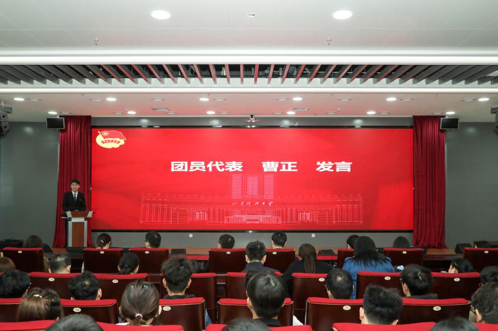 入团介绍人代表、测绘学院张凤琳宣读团章中团员义务和权利的条款,新团员代表、电信学院商婧彤及团员代表、“中国大学生自强之星”称号获得者、土建学院曹正先后发言。仪式在团歌《光荣啊,中国共青团》合唱中圆满结束。