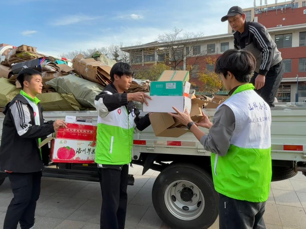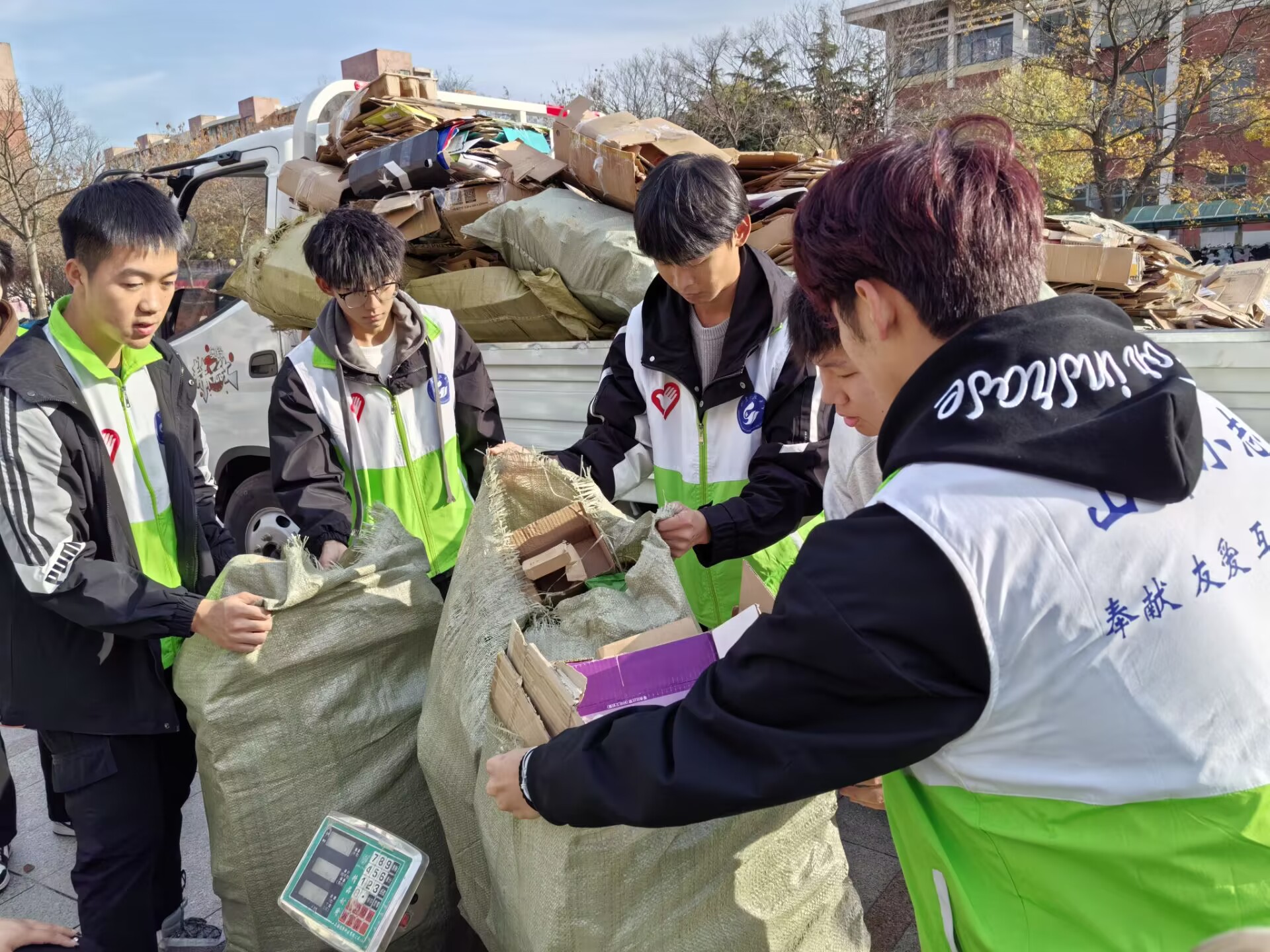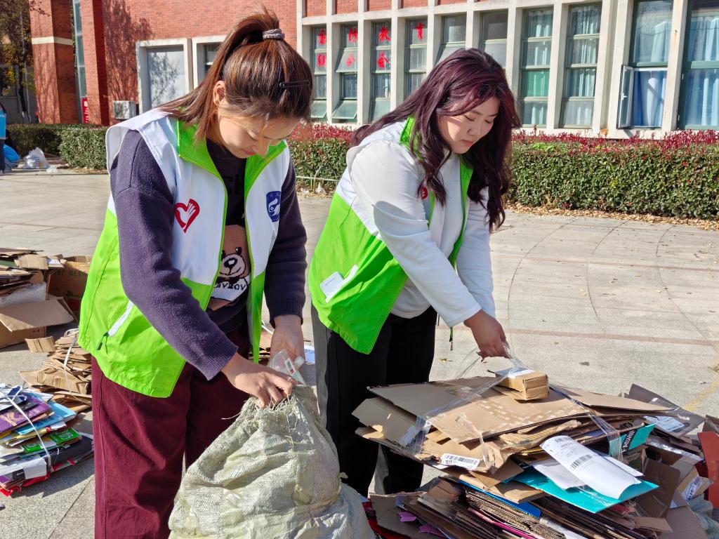 活动前期,各学院志愿服务组织积极宣传,号召同学们将塑料瓶和废旧纸箱收集起来,交由学院志愿者统一整理。活动过程中,志愿者们团结协作,将整理好的可回收物品送至繁星广场集合场地,进行了分类、称重,并联系回收站进行了回收处理。在大家的积极参与下,“小螺号·心随瓶动”取得了良好成效,共回收空瓶104.35千克,纸盒504.05千克。