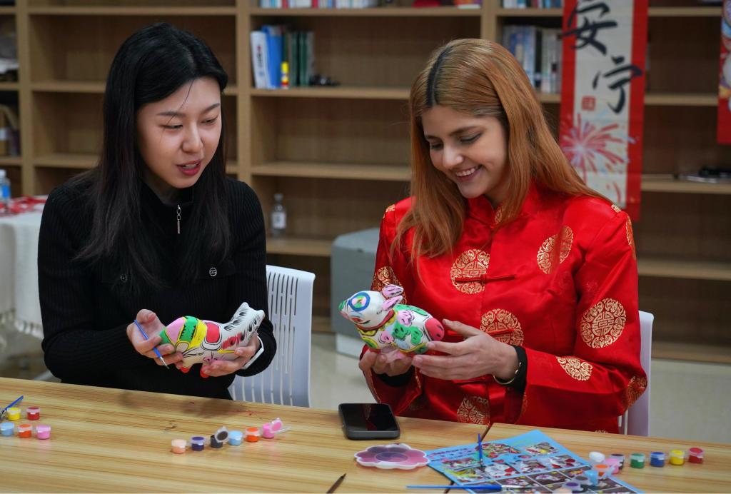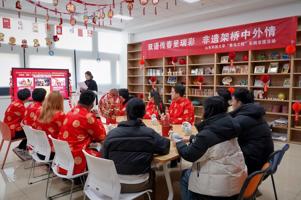 1月12日,校团委在图书信息中心悦享空间举办“双语传春呈瑞彩 非遗架桥中外情”实践交流活动,中外青年齐聚一堂,沉浸式体验非遗文化,喜迎蛇年春节。学校“青马工程”学员代表及来自俄罗斯、塔吉克斯坦、乌兹别克斯坦、印度尼西亚、伊朗、萨尔瓦多、基里巴斯的国际学生代表参加活动。