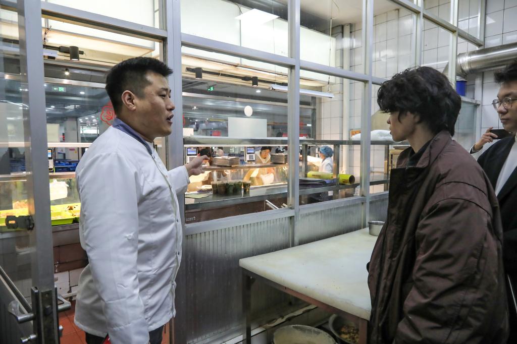座谈会结束后,学生代表前往学苑餐厅参观食堂后厨。同学们实地参观了食堂的食材验收、贮存、加工、餐用具消杀等环节,对学校餐饮服务的保障措施有了更直观地认识,同学们纷纷表示对学校食堂的食品卫生安全工作更有信心了。