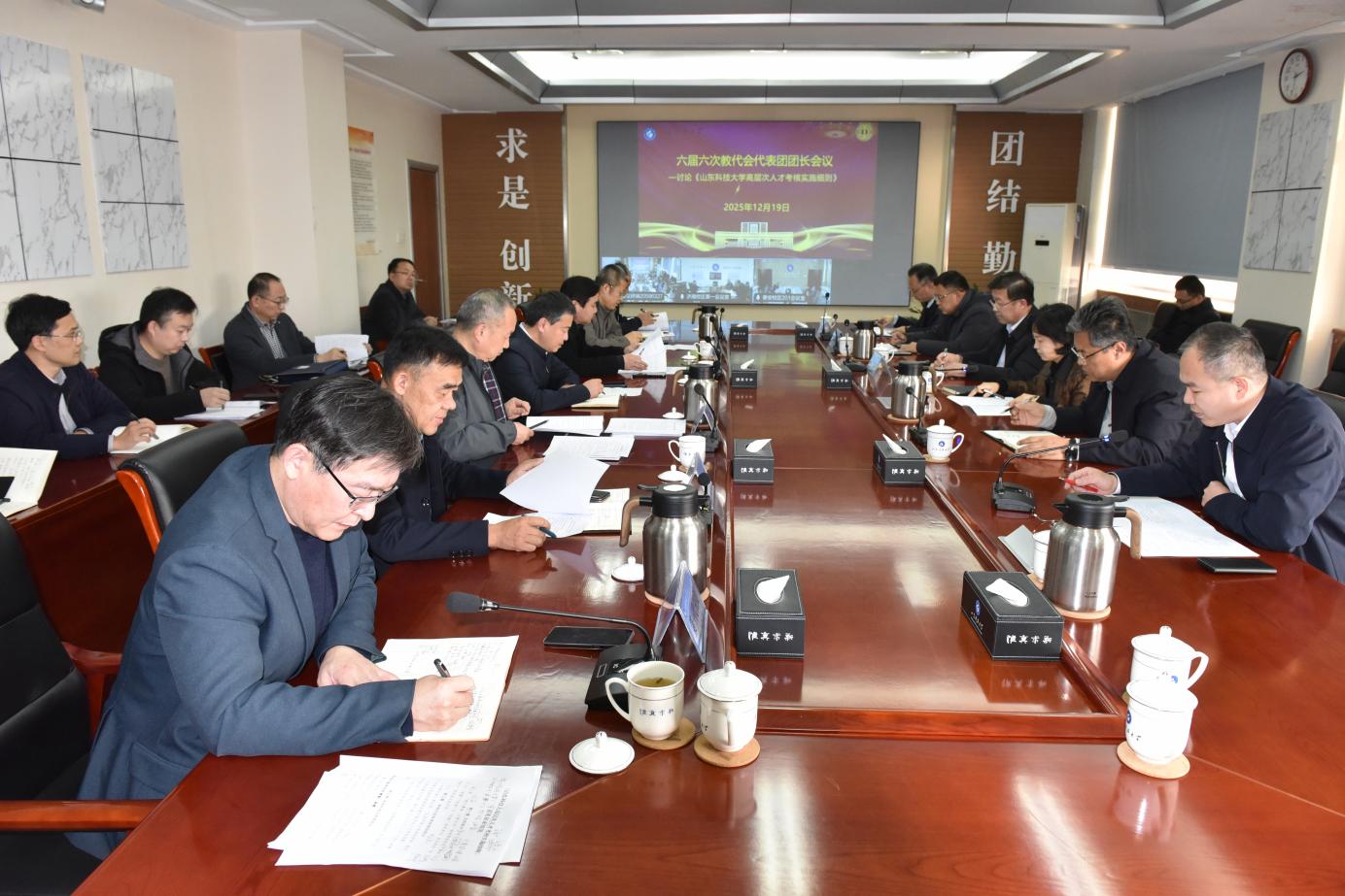 会议主要围绕《山东科技大学高层次人才考核实施细则》的修订工作展开。首先人才工作办公室主任苗汝昌对《细则》的修订背景、主要内容和修订过程作了汇报说明。随后,各代表团团长依次汇报了本代表团前期组织代表讨论的情况,并就《细则》内容提出了具体的修改意见和建议。郭益灵副书记认真听取了各代表团的汇报。