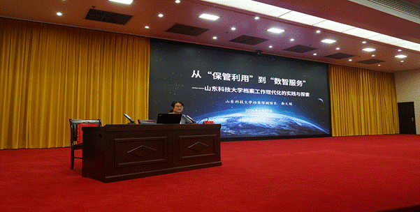 本次年会以“人工智能与数字转型:高校档案管理现代化与全域服务提升”为主题,邀请安徽大学马仁杰教授、吉林大学张卫东教授分别作专题报告。邀请济南大学、中国石油大学(华东)、临沂职业学院、山东农业大学、山东科技大学、临沂大学等省内6所高校作主题交流发言。靳文娟以《从“保管利用”走向“数智服务”—山东科技大学档案工作现代化的实践与探索》为题,结合学校档案工作实践,从“革新档案管理理念、规范档案管理标准、构建一体化档案管理系统、推进档案数字化进程、构建档案安全保密体系、推动档案服务与利用创新”六个方面,深入探讨了我校档案工作现代化转型的路径,并从“信息化建设持续深化、服务利用水平再度提升、人才队伍建设不断优化、安全保障体系更加完善”四个方面,对学校未来的档案工作进行了展望。省内高校的档案工作实践共同为高校档案工作提供了可借鉴的经验和发展思路。