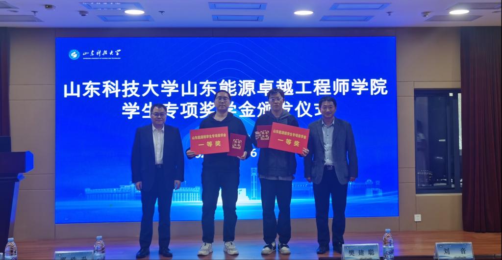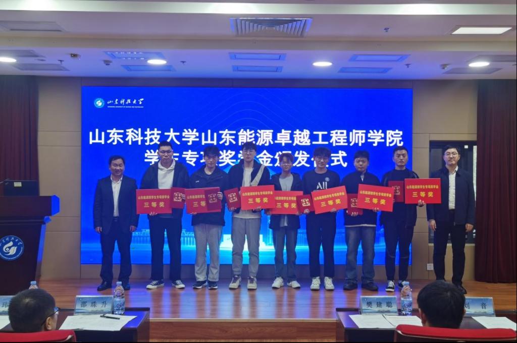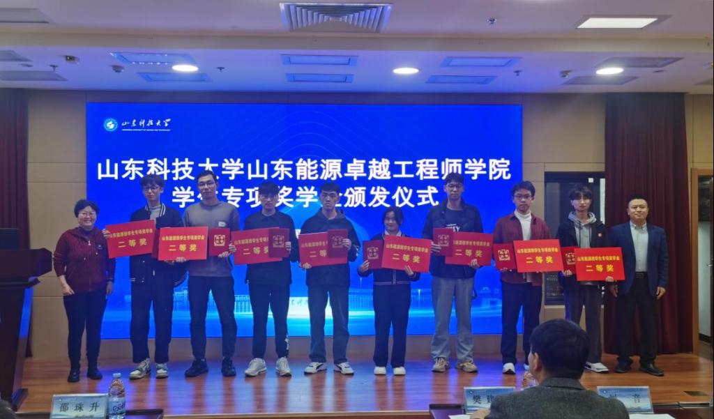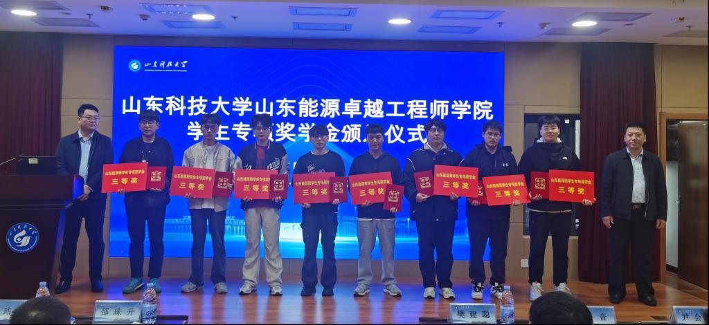11月16日,学校举行山东能源卓越工程师学院学生专项奖学金颁发仪式。教务处处长樊建聪、山东能源集团党委组织部(人力资源部)副部长邵珠升、安全学院副院长刘音、地科学院副院长尹会永、山东能源班全体学生参加仪式。颁奖仪式由教务处副处长刘勇主持。