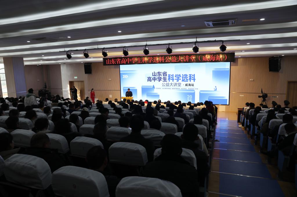 1月18日,由山东教育电视台、威海市教育局主办的山东省高中学生科学选科公益大讲堂(威海站)巡讲活动在威海市荣成三中举办。