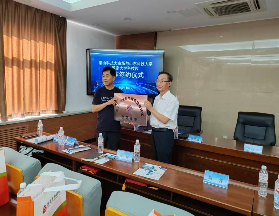 活动中,泰山科技大市场与泰安分园签署正式合作协议,标志着双方战略合作迈入新阶段。同时,泰山科技大市场为国家大学科技园泰安分园授予“泰山科技大市场成果转移转化示范基地”牌匾,这不仅是对泰安分园在科技成果转化工作中所做努力的高度认可,更为未来双方在科技成果转化领域的深度合作奠定了坚实基础。