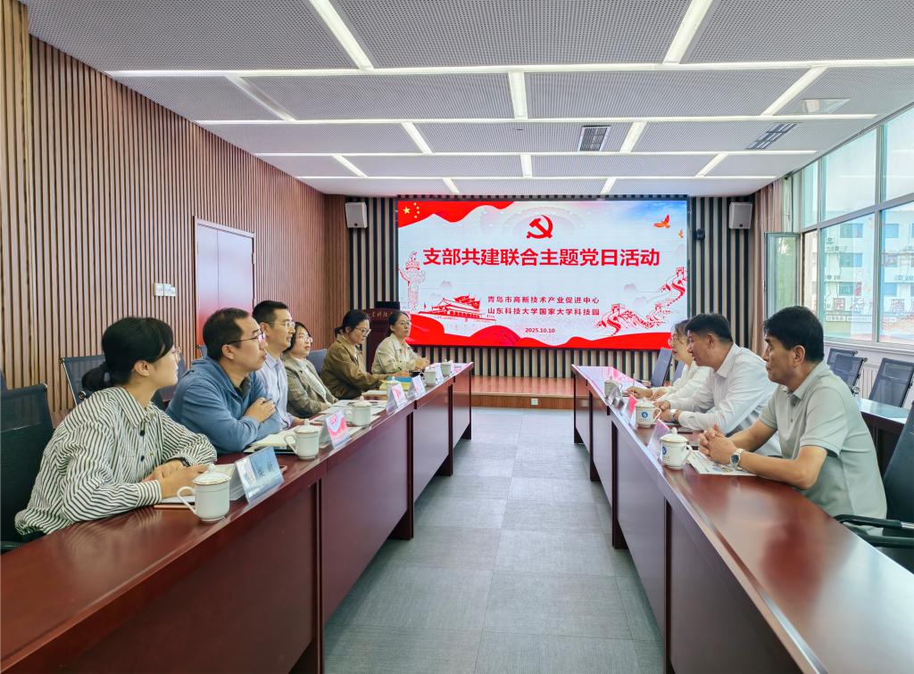 10月10日,青岛市高新技术产业促进中心与国家大学科技园共同开展以“两个覆盖提质量 推动发展增效能”为主题的支部共建联合主题党日活动。青岛市高新技术产业促进中心主任阮航、副主任李润海、技术市场服务部曹闪,国家大学科技园管理办公室副主任、科技产业管理处副处长修湖,创新创业服务科曲祥雯,国家大学科技园党组织负责人及业务部门相关负责人员参加了此次活动。