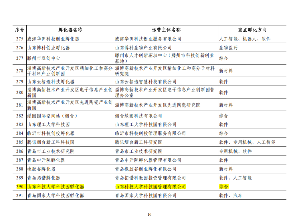 近日,工业和信息化部科技司发布了首批科技型企业孵化器名单,山东科技大学科技园成功获评“标准级孵化器”。此次评价是孵化器管理职能由科技部划转工信部后的首次认定,体现孵化器行业发展的新形势、新要求,核心标准从“量”转向“质”,更加注重产业结合与专业服务能力。山东省共有34家孵化器入选,其中青岛市占6席。