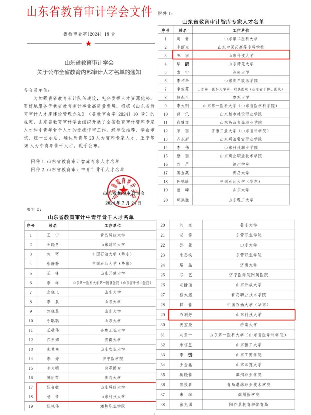 图25、获评“山东省教育审计智库专家”1人、“山东省教育审计中青年骨干人才”3人