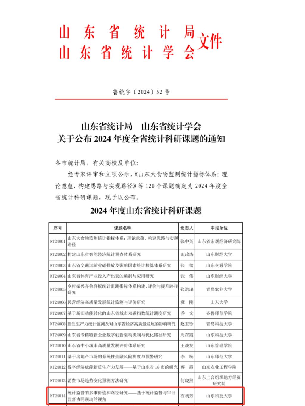 图18、立项山东省统计局科研课题1项
