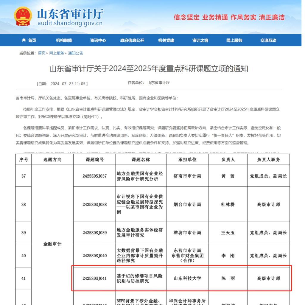 图17、立项山东省审计厅重点课题1项