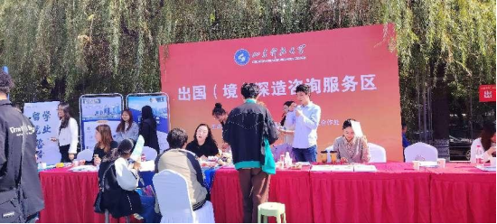 为了进一步拓宽学生出国(境)深造渠道,满足学生发展的多元需求,10月17日上午,国际交流合作处联合大学生就业指导中心,在我校2024年秋季校园双选会上开设“出国(境)深造咨询服务区”,由国际交流合作处、近10家合作院校中国办事处及留学服务机构组成,服务覆盖各学历层次和各年级阶段,为有出国(境)深造及短期访学需求的学生提供咨询答疑服务。