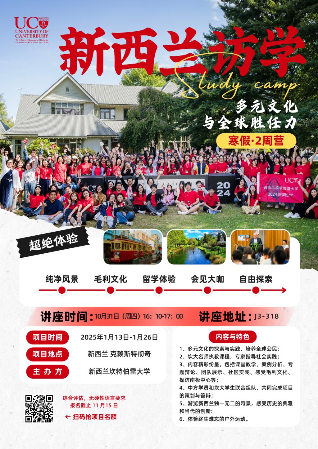 新西兰坎特伯雷大学寒假项目宣讲通知
