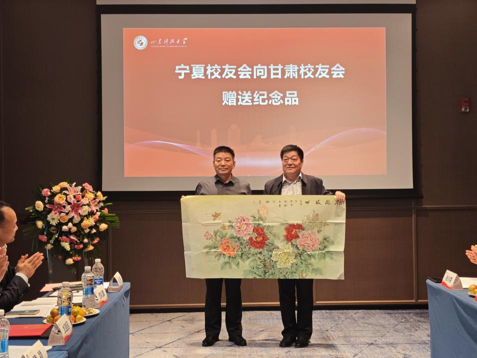 姚庆国为甘肃校友会会长、执行会长颁发聘书并授旗。山东科技大学校友总会副会长兼秘书长、校友工作办公室主任王晓东为甘肃校友会副会长代表颁发聘书。山东科技大学材料学院党委书记申兆亮为甘肃校友会秘书长、副秘书长代表颁发聘书。山东科技大学艺术学院党委书记王斌为甘肃校友会理事代表颁发聘书。