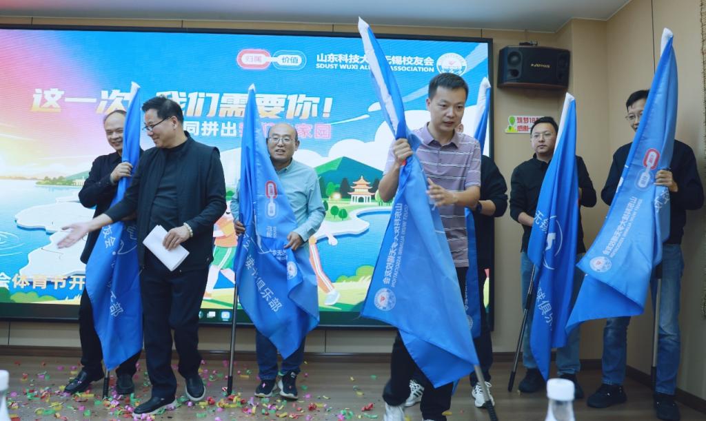 启动仪式上,校领导为六项活动的校友代表授旗,象征着活力与责任的接力。校友包卫平作为掼蛋活动召集人,带领全体组织者庄严宣誓:"以山科人之名,锡聚活力,与你同行,使命必达,不负所托!"