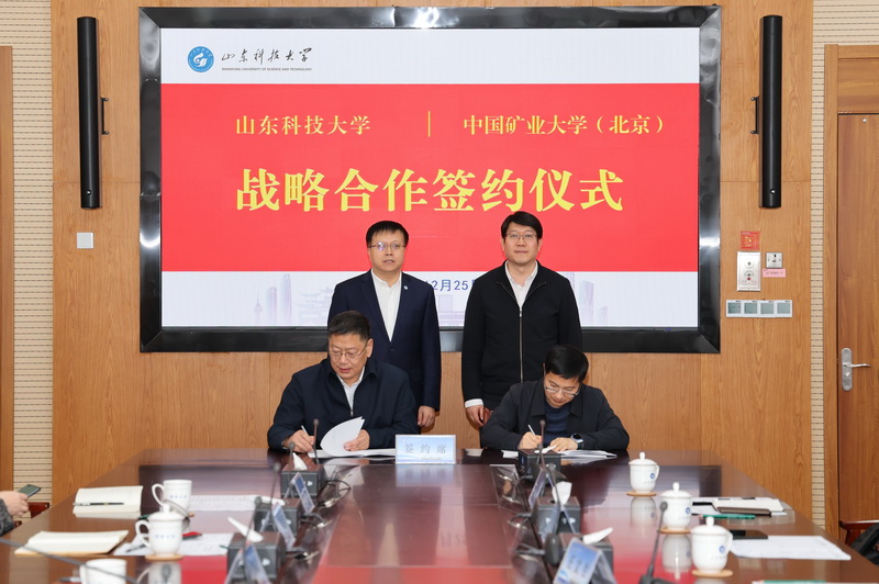 12月25日,山东科技大学与中国矿业大学(北京)战略合作签约仪式在我校举行。山东科技大学党委书记王君松、中国矿业大学(北京)党委书记韩尚峰出席仪式并致辞,山东科技大学副校长诸葛福民、中国矿业大学(北京)副校长汪文生代表双方签署战略合作协议。校友、中国科学院院士代世峰,山东科技大学副校长阳凡林出席仪式。
