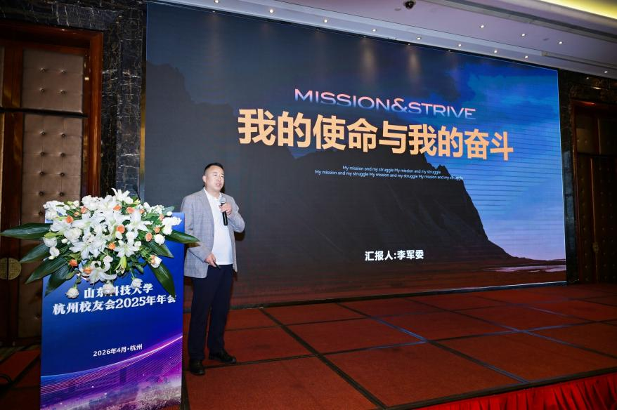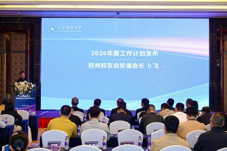 春风送暖,潮涌钱塘。2026年4月11日,山东科技大学杭州校友会年会在杭州天元大厦酒店隆重召开。本次年会以“嵙聚钱塘,AI启新程”为主题,学校领导老师代表、各地兄弟校友会嘉宾及杭州校友们齐聚一堂,共叙山科情谊,共话AI时代发展新机遇,共绘校友会未来发展新蓝图。