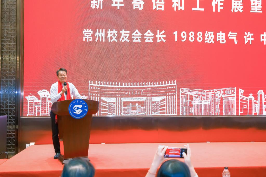 常州校友会会长许中发表了热情洋溢的致辞,对母校老师和兄弟校友会嘉宾的到来表示欢迎和感谢,向校友们表达了2025年新年祝福,鼓励校友们继续发扬“惟真求新”的校训精神,为母校和社会的发展贡献自己的力量。