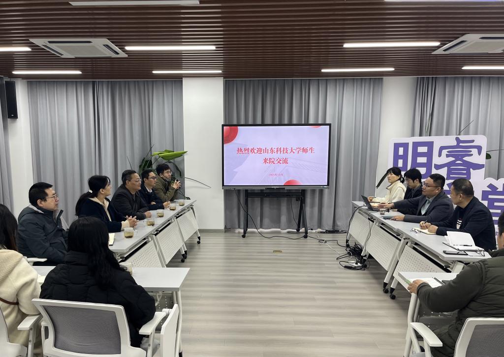 座谈会上,王雨君院长对图书馆师生来访表示热烈欢迎,介绍了研究院聚焦新质生产力的决策支撑基地、服务科技强市建设的信息服务基地,以“站在明天看今天,站在产业看科技,站在全国看青岛”的视角,开展“未来产业研究”、“十五五规划编制”、“科创睿报”、“预见青岛”、“明睿学堂”等重点工作,报送40多篇科技战略研究报告,120多期科创睿报,研究成果获市领导批示25次。张福俊副馆长介绍了图书馆近年来的主要工作情况,并说明了图书馆下步的工作计划。之后,与会人员围绕学术研究合作、人才团队培养、数据资源共享等方面工作进行深入交流。通过此次调研交流,双方就开展学术交流、专题研究、资源共享等方面达成共识。