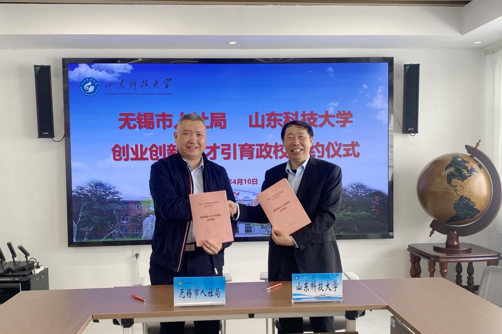 韩永对学校取得的成绩表示赞赏,从地理位置、经济环境等方面介绍了无锡市的基本情况,表达了对高层次人才的需求。他表示,无锡市人社局高度重视引学引才工作,学校的人才培养模式与无锡市发展需求高度契合。本着“‘济’遇良才、‘锡’望你来”的理念,希望吸引更多的有志齐鲁青年到无锡就业创业,并以此为契机加强与山东科技大学合作交流,拓宽人才引进渠道,推动产学研深度融合,实现城市发展与高校人才培养的互利共赢。
