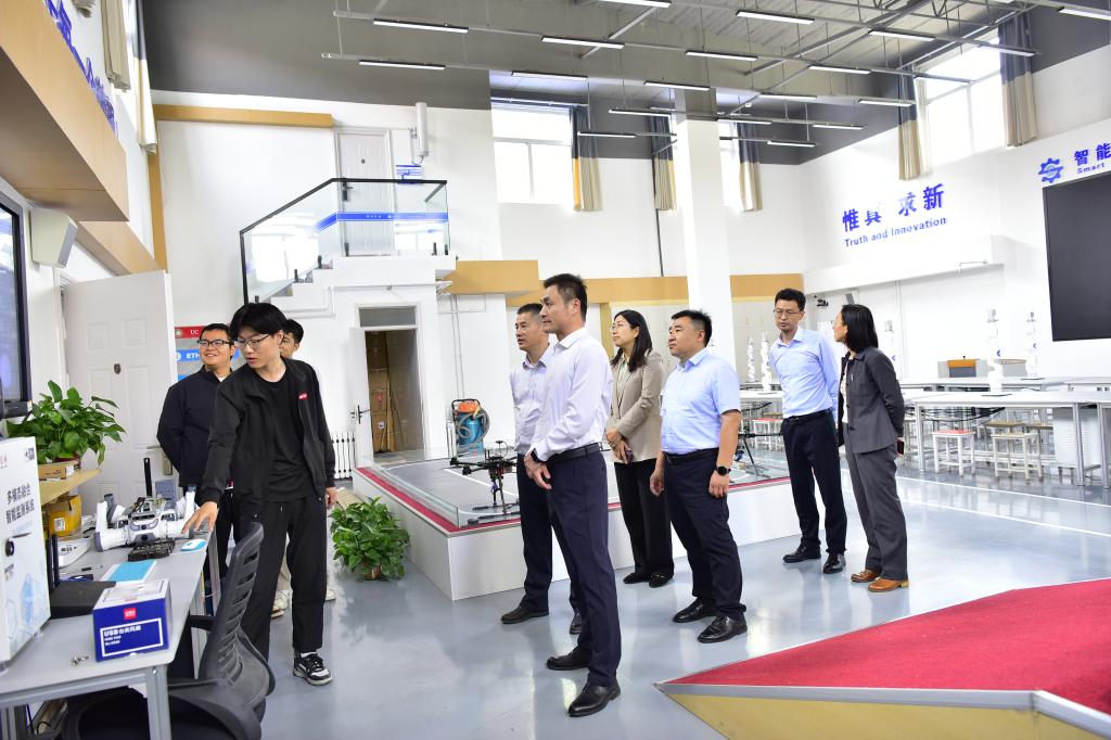 5月6日,天桥区政府党组成员、副区长焦霄黎,区科技局党组书记、局长吴凯,堤口路街道党工委副书记、办事处主任席凌一行到校区调研交流。校区党委常务副书记梁赛江、管委副主任刘西奎,校人文社科处副处长云兵兵陪同调研。