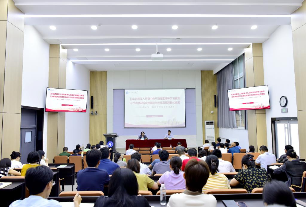 董海荣指出,加强作风建设是永葆党的先进性和纯洁性的强大武器,是筑牢党长期执政根基的关键举措,是实现党的中心任务的重要保证。要推进深入贯彻中央八项规定精神学习教育走深走实,以作风建设新成效赋能学校高质量跨越式发展,狠抓“本”与“形”的相互贯通,狠抓“大”与“小”的辩证统一,狠抓“上”与“下”的兼顾并举,狠抓“常”与“长”的协同联动。
