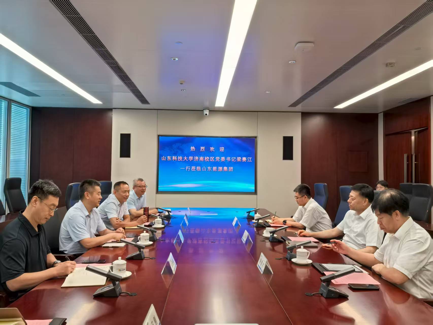 梁赛江对山东能源集团的热情接待表示感谢,详细介绍了济南校区的功能定位、办学特色、专业设置、校园环境及发展思路等情况,希望山东能源集团多支持济南校区发展,在教师实践锻炼、科研合作等方面进一步加强合作。