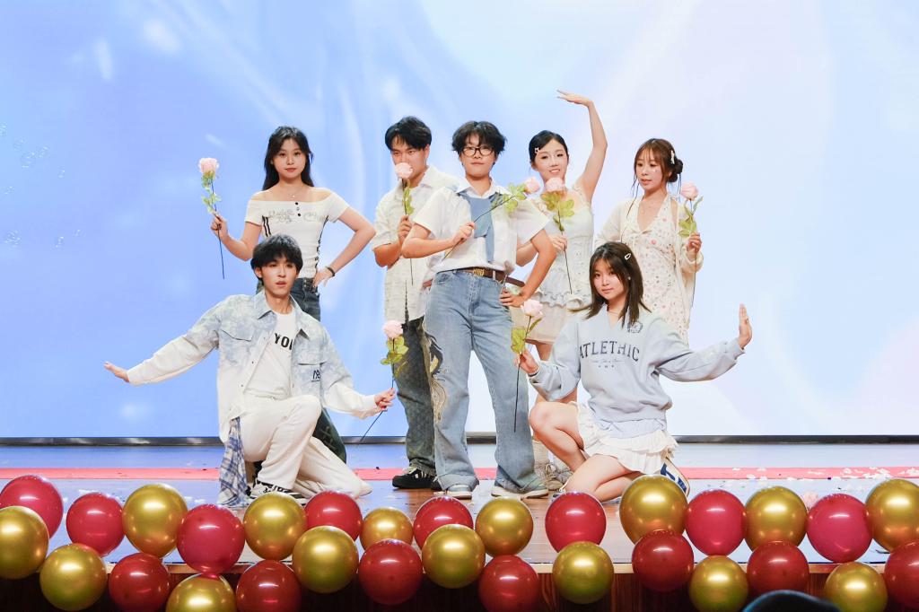 晚会以“门外有只胖橘”乐队带来的开场歌曲瞬间点燃全场热情,强劲的节奏与飞扬的歌声,迅速将观众带入晚会的热烈氛围。整场晚会紧扣主题,分“山海相逢 惟真同心”“弦歌不辍 奋楫争先”“乘风破浪 志泽四方”三个篇章依次展开。13个节目涵盖了歌曲、舞蹈、情景剧、武术、朗诵、器乐、走秀、配音等多元艺术形式,展示了校区学生的青春活力与艺术气息。