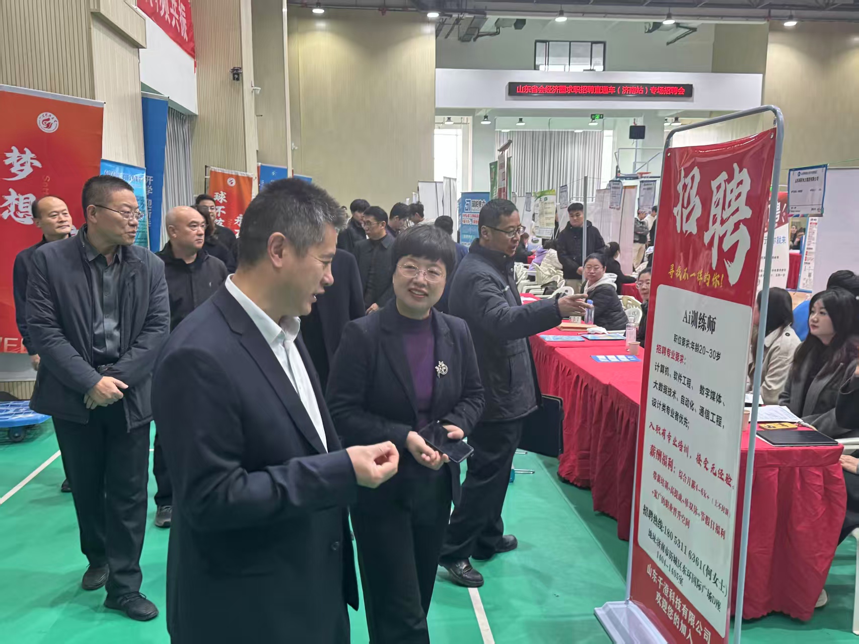 济南市人社局公共就业服务中心人力资源处处长潘冰,天桥区区委组织部副部长、人社局党组书记、局长胡彦平一行到校区调研指导,与校区及企业代表共商政校企协同育人机制,为大学生就业创业提供政策与平台支持,增强毕业生留鲁、留济就业的认同感与主动性。