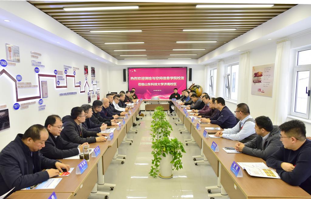 3月7日,测绘学院济南校友会会长、测量79级校友、原通用技术集团工程设计有限公司首席专家刘明河,副会长、测量87级校友刘西胜等一行34人到访济南校区。济南校区党委书记梁赛江、测绘学院党委书记范俊峰、校友总会常务理事郭加书、财经系党总支书记赵长青等在嵙友泉城会客厅参加校友座谈会。