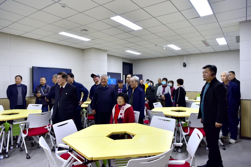 “我们的智慧教室能在授课过程中进行师生互动,以教师用一体机为主体,下设3台小组一体机,学生利用配备的pad,实现分组讨论、成果展示、教师点评等互动环节。教室配有自动录播系统,轻松实现课程自动录制成片。”听着介绍、看着校园的发展变化,老同志们连连称赞。