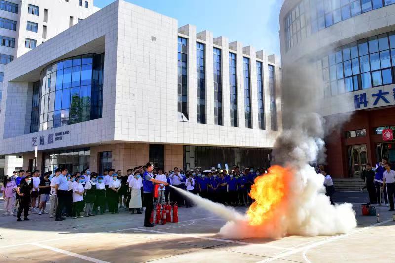 为深入开展第22个全国“安全生产月”活动,6月30日,济南校区组织开展了以“人人讲安全,个个会应急”为主题的消防应急疏散及灭火演练,进一步提升师生员工的消防安全意识和处理突发火灾的应变能力,确保校园平安和谐稳定。校区领导贾长响、郭加书、孙国强及学团工作部、安全管理部、后勤管理部等有关部门负责人,堤口路街道办事处及驻地派出所、消防、应急、城管等负责同志到现场观摩指导,物业值班人员、餐厅工作人员及部分学生代表等参加了应急疏散及灭火演练。