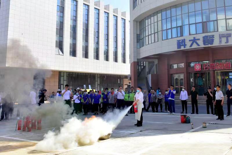 下午四点,演练活动正式开始。校区管委副主任郭加书担任演练总指挥,山东润霖消防工程公司讲师赵其超主持现场活动并进行了培训讲解。